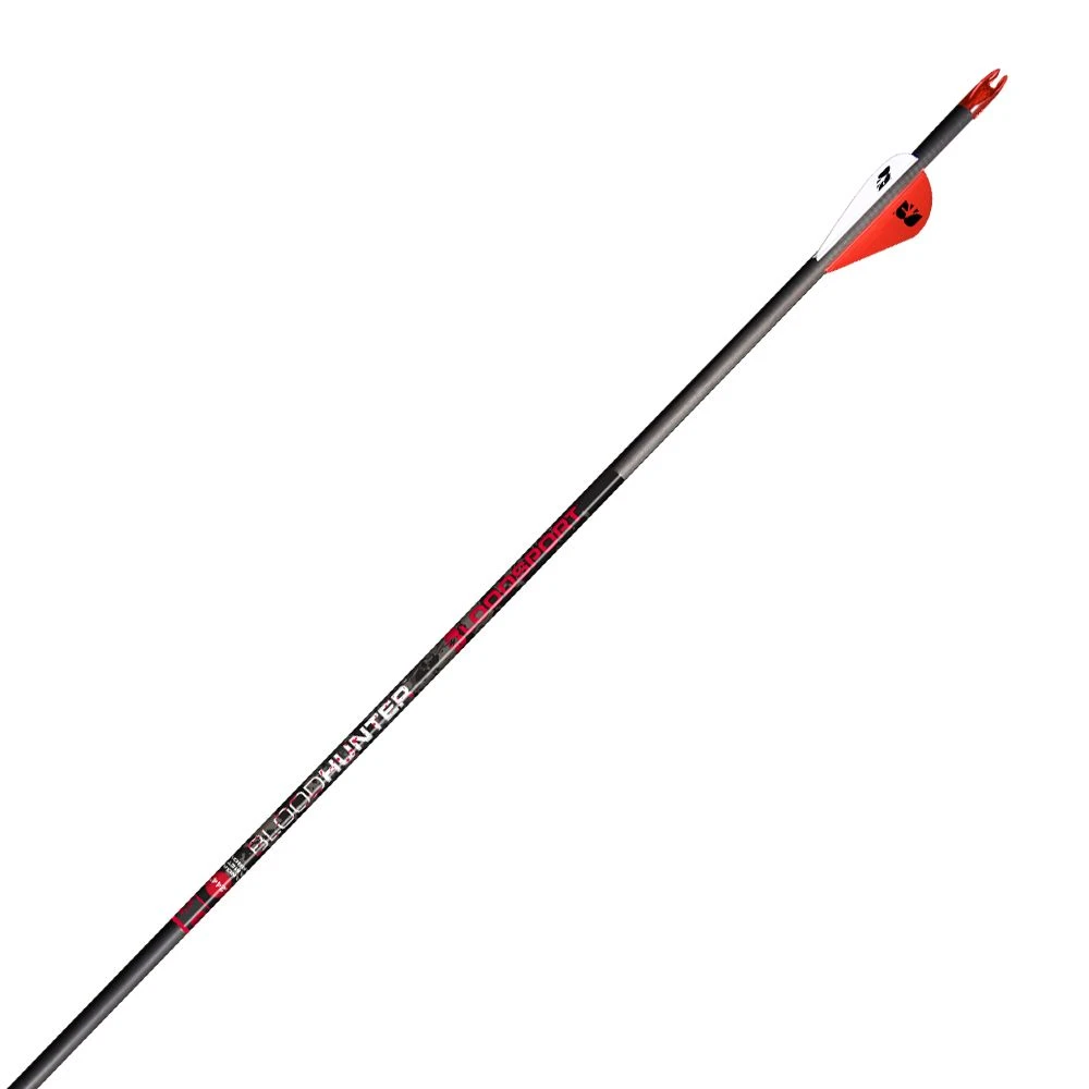 The Bloodhunter™ is a standard diameter, mid-weight arrow with a .004” straightness that delivers the precision today’s bowhunters demand. Its high kinetic energy penetrates deep to take down any game. After the shot, survey the Blood Ring™ to identify the location of your hit and plan a successful retrieval. Rugged Wrap™ construction makes sure the Bloodhunter will stay with you hit after hit; so wipe off the blood and find your next target.
